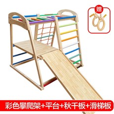 원목 실내 다기능 놀이터 원목 미끄럼틀 가정 감각통합 훈련 기구 감통기구 정글짐, 컬러선반그네양면미끄럼링
