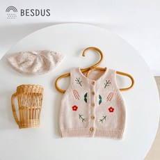 [당일발송]베스더스 유아 아기 니트 플라워 자수 조끼 베스트 봄 간절기 가을 신생아 백일 돌 애기 옷 베베옷