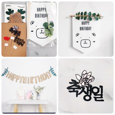 써니토퍼] 생일3종세트 토퍼+펠트벽장식플래그+가랜드(OR펠트모자), 백일