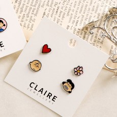 클레어쥬얼리 찰리브라운과 루시 4pce 스누피 애니메이션 캐릭터 알러지없는 은침 (925실버) 귀걸이