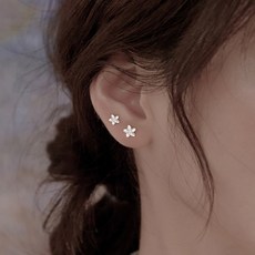 MOA 925 실버 은침 러블리 미니 플라워 은 귀걸이 귀찌 선물 여성용 한쌍