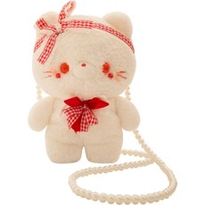 1pc 23cm 귀여운 토끼 고양이 곰 진주 체인 봉제 Satchel Kawaii 동물 플러시 배낭 가방 여자 아기 생일 선물, 백의