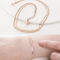 다이아모어 14K 18K 납작볼 판볼 커브 레이어드 금볼 명품 두줄 체인 팔찌