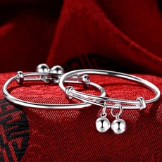 F&A 가을 실버 999 베이비 팔찌 광택 벨 푸시 당겨 실버 팔찌 전체 달 선물 어린이 팔찌 공장 도매 9f