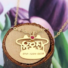 14k 탄생석 소 미아방지 아기 이니셜 돌 백일 목걸이 금 소 띠 유아동 BN481
