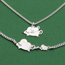 엄마쥐 아기쥐 쥐띠 실버 미아방지 팔찌 목걸이 세트
