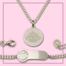 실버 블링 돼지띠 미아방지목걸이 미아방지팔찌 미아방지세트 돌선물 키즈목걸이 키즈팔찌 두돌선물 여아선물 남아선물 주니어목걸이 아이목걸이 어린이팔찌 어린이목걸이 3살선물 4살선물, 목걸이 팔찌 세트, 기본뒷면+팔찌 앞면 추가각인