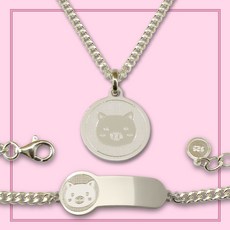 실버 돼지띠 미아방지팔찌 미아방지목걸이 미아방지세트 돌선물 키즈목걸이 키즈팔찌 두돌선물 여아선물 남아선물 주니어목걸이 아이목걸이 어린이팔찌 어린이목걸이 마우스목걸이, 목걸이 팔찌 세트, 뒷면 기본각인