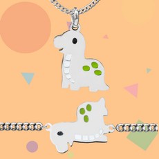 실버 귀여운 아기공룡 미아방지팔찌 미아방지목걸이 미아방지세트 돌선물 키즈목걸이 키즈팔찌 두돌선물 여아선물 남아선물 주니어목걸이 아이목걸이 어린이팔찌 어린이목걸이, 1. 목걸이 팔찌 세트