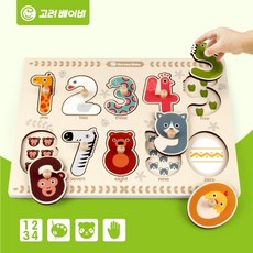 고려베이비 두돌장난감 소근육발달 아기원목교구 동물 숫자 원목 꼭지퍼즐