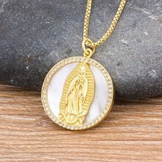 차량용성물 축일선물 가톨릭굿즈 묵주팔찌 2020 새로운 도착 성모 마리아 펜던트 체인 목걸이 골드 크리스탈 패션 펜던트 가톨릭 쥬얼리 파인 파티 기념일 선물, N112
