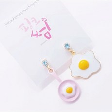 베이비 핑크 후라이팬 계란 음식 큐빅 패션 드롭 아동 여아 초등학생 귀찌 귀걸이