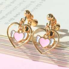 빨간사과유리구두 여아 초등학생 어린이 귀걸이 귀찌 – 하트링핑크날개