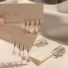수리39링 꽃 나비 로즈 플라워 귀안뚫는귀걸이 드롭 귀찌 세트 귀걸이