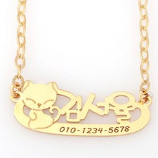 18K 미아방지목걸이 체인포함 이니셜 미니야옹이YP 돌선물 아기백일선물 동물 BN316, 기본굵기:사진그대로