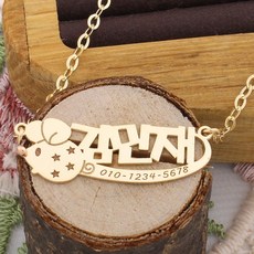 14K 아기 통통 코끼리 미아방지 목걸이 돌 백일 선물, 뒷면각인, 옐로우골드