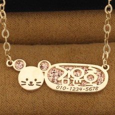 14K 2겹유노쥐 미아방지 아기 이니셜 돌 백일 목걸이 금 쥐 띠 유아동 BN474, 단품