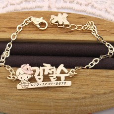18K 철수 미아방지 아기 이니셜 돌 백일 팔찌 금 유아동 인물 BN465, 단품