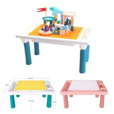 더뻔뻔 블럭책상 듀플로 좌식형 테이블 통큰블럭 호환 블럭판 포함, 흰색책상(노랑색블럭판), 레고용(작은블럭용)
