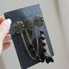 코코블링 블랙 라이언 엔틱 핸드메이드 체인 브로치