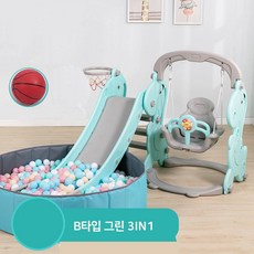 유아 실내용 미끄럼틀 슬라이드 그네 세트 놀이터 풀세트, B타입 그린 3IN1