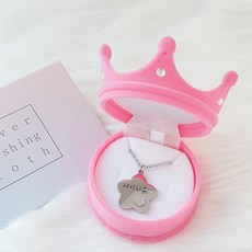 [케이스증정] 샤이니유 써지컬스틸 큐빅별 미아방지목걸이 키즈, (목걸이)35+3cm, 동글볼체인, 나무케이스
