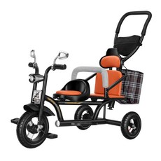 Q1040755 이인용 세발자전거 쌍둥이 자매 바이크 바람막이 안전 브레이크 다기능 자전거 사은품증정, 핑크