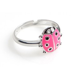 [에밀리]유아 아동 실버 반지 핑크레이디버그