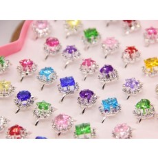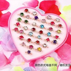 – 어린이 반지 세트 문방구 선물 편의점 공주 키즈 토이 아크릴 보석 보물상자 칠색석 플라스틱 아날로그 방수 크리스탈 글라스 다이아몬드