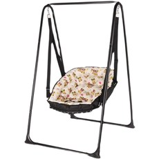 실내 그네 어린이 요람 흔들 침대 아기의자 파파스윙, 노란꽃패턴쿠션 블랙 브래킷