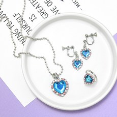 비단길 블루하트 목걸이 + 귀찌 + 반지 세트