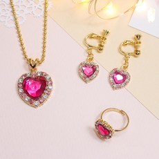 비단길 하트로즈 목걸이+귀찌+반지 세트