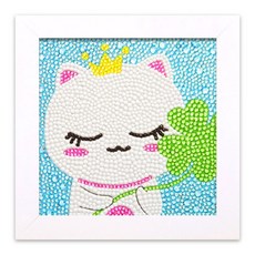 비치나몰 어린이 보석십자수 전용액자포함 캐릭터 DIY 세트 비즈 큐빅 소형, 정사각-럭키냥, 1set