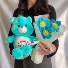 무배 케어베어 스마일 꽃다발 위시베어 애착 곰인형 여자 남자 친구 생일 선물 기념일졸업식, 민트, 스마일 3송이, 선물용 쇼핑백 추가