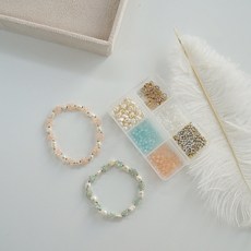 샤론델 플라워 진주 비즈 팔찌 만들기 세트 (모든 재료 포함 우레탄줄+오링+올챙이볼+마감부자재 포함) / 비즈 diy 키트