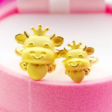 아리골드 순금 하트품은 소띠 소 돌반지 1.875g 3.75g