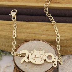 14K 카우윙크 미아방지 아기 이니셜 돌 백일 팔찌 금 소 띠 유아동 BN455, 단품