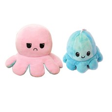 큐엘큐엘 리버시블 앵그리 해피 양면 문어 인형 소 + 키링 세트, 민트 + 핑크(인형), 랜덤발송(키링)