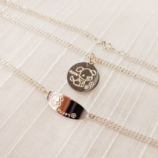 [이천쥬얼리][무료배송]실버 아기미아방지 목걸이 팔찌 세트 은 순은 이니셜 전화번호 각인 코인