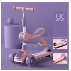 LEXKUYI 렉스쿠이 키즈 킥보드 베이비 스쿠터 유아용 아동용품 광폭타이어 접이식 발광 LED 탈부착식 라이트 2021년, 핑크