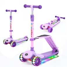 BANGJUE 어린이 킥보드 스쿠터 씽씽이 2in1 LED발광+멜로디 원터치 폴딩/3단 높이조절/고강도 프레임, 퍼플