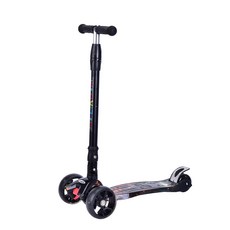LIKU 큰 바퀴가 달린 LED 효과 깜박이는 LIKU 3 륜 스쿠터 어린이 접이식 스쿠터, 검은색
