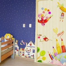 현관문 시트지 ART실사 – 041D, 국민현관 – 색연필여행 베이지