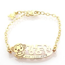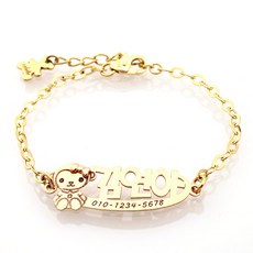 아가골드 14K 이니셜 몽바나아기 미아방지팔찌 돌선물 아기백일선물 원숭이 BN262, 단품