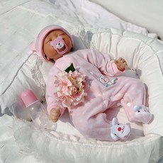 [당배]퍼스트패밀리 리본돌 베이비돌 애착인형 reborndoll 아기인형 핑크2 55cm