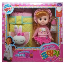 키즈원 사랑스런 뽀뽀 아기인형 포대기 세트, 혼합색상