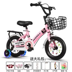 선물증정★유아 자전거 보조바퀴자전거 아기자전거 2-3-6-7-10세 네발자전거 어린이자전거 유치원생 초등학생 튼튼 견고 수납용이, 핑크 [반짝이는 휠] + + 선물패키지, 16인치 4~7세/키100-120cm 추천