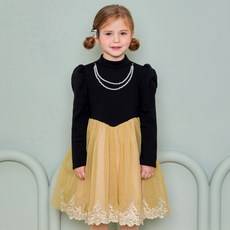 젤리스푼 여아용 사랑스러운 진주 목걸이 기모 원피스