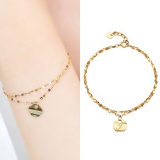 이니셜 14K 여자 여성 코인 금 체인 두줄 레이어드 팔찌 팔지 라인