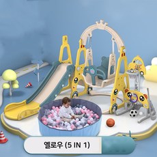 유아 실내 미끄럼틀 그네 농구골대 세트 놀이 기구 놀이터, 옐로우 (5IN1)